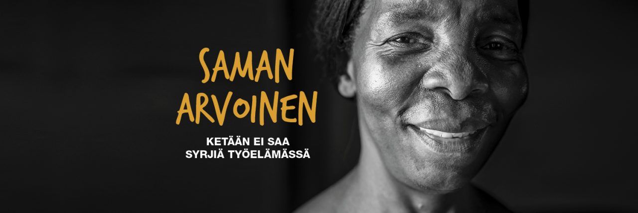 SASKin Saman arvoinen -kampanja tähtäsi siihen, ettei ketään syrjittäisi työpaikalla uskontoon, rotuun, sukupuoleen, poliittiseen katsomukseen, järjestäytymiseen, seksuaaliseen suuntautumiseen, vammaisuuteen tai muuhun ominaisuuteen perustuen. Kansainvälisen työjärjestön ILOn työelämän perusoikeudet kieltävät syrjinnän.